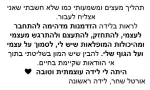 הפוסט אורטל שחר, לידה ראשונה Copy הופיע ראשון בלהגשים לידה - להשיג תוצאות בלידה